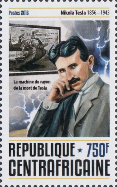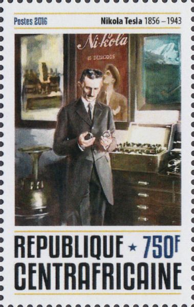 Zijn voorkeur voor mooie kleding, gokken en zijn voorkeur voor de betere kringen sloot aan op zijn excentriciteit en eigenaardigheden. De vijf postzegels uit Centraal Afrika maken deel uit van twee blokjes die in 2016 zijn uitgegeven in Centraal Afrika ter gelegenheid van de 160e geboortedag van Tesla. Hij maakte zich heel druk om het verlenen van de Nobelprijs aan Marconi en betwistte de geldigheid van Einsteins werk.